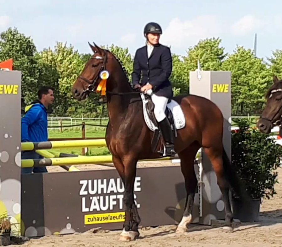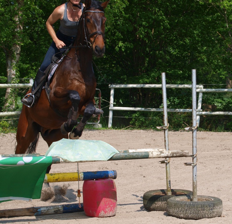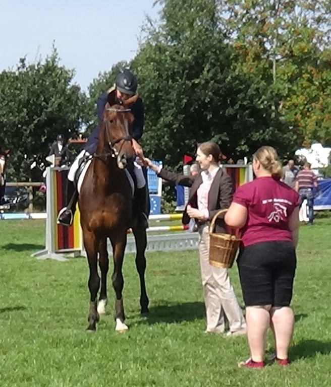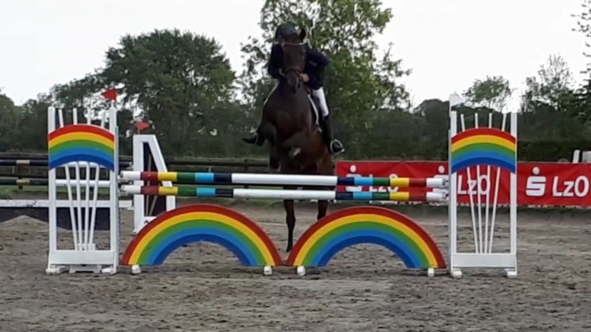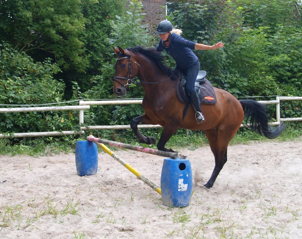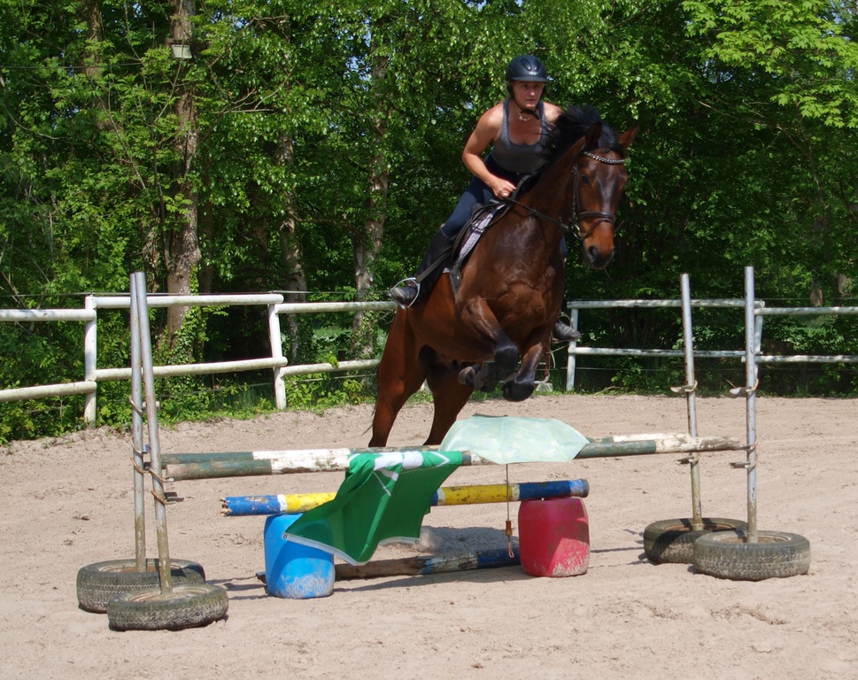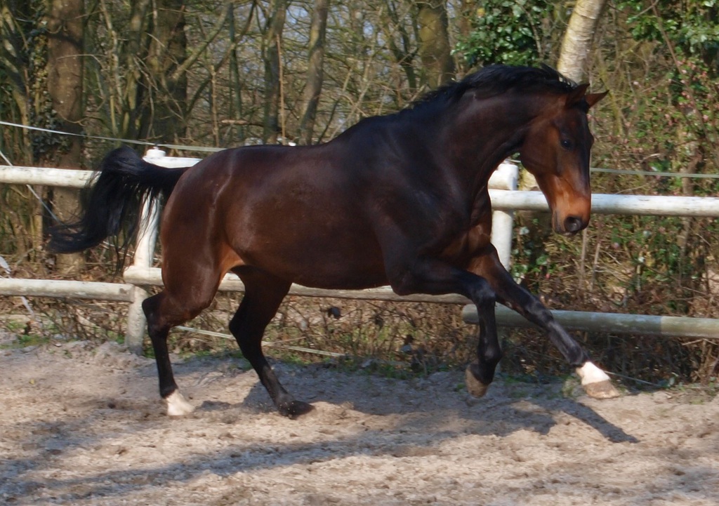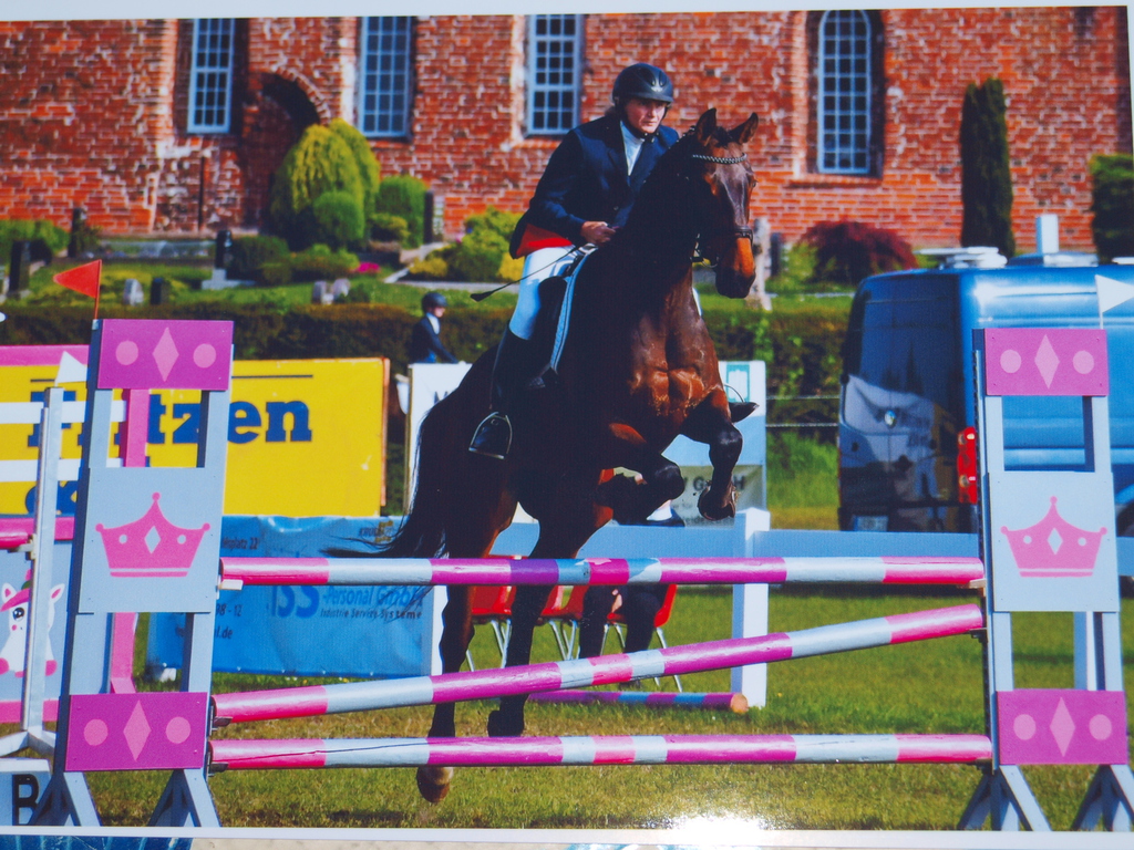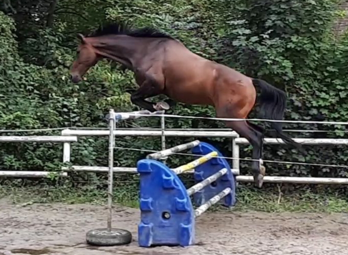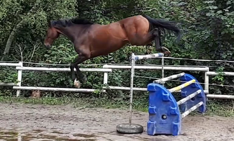 Er ist ganz brav unterm Sattel, geht auch im Gelände und meistert gewissenhaft die ihm gestellten Aufgaben. Beim Springen ist er voll in seinem Element, springt sicher und freudig. Beim Freispringen überwindet er problemlos und in Ruhe die 1,65m. Ein Video dazu ist vorhanden und kann zugeschickt werden