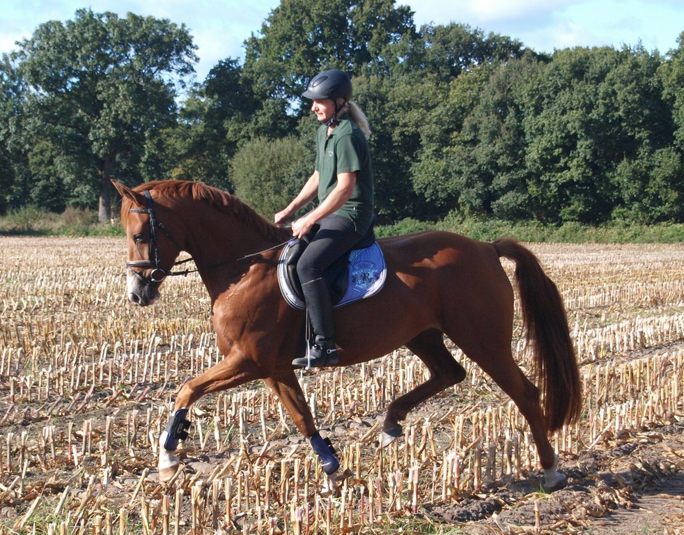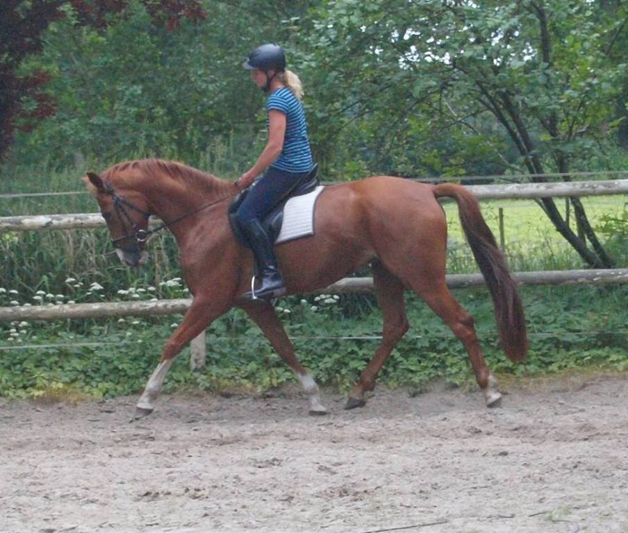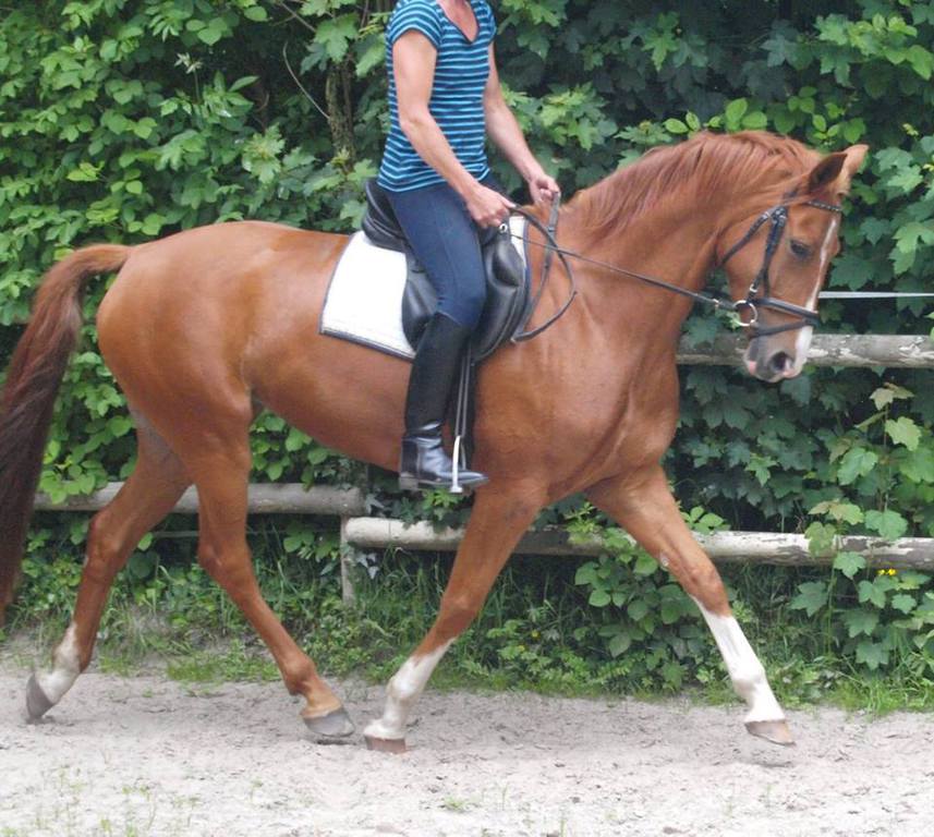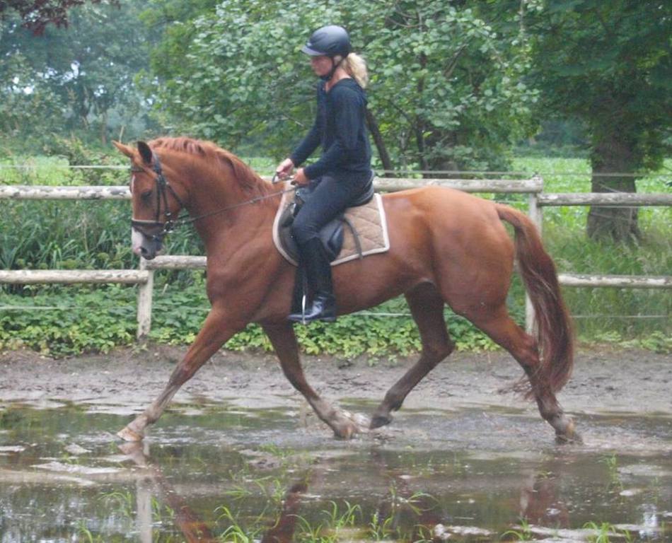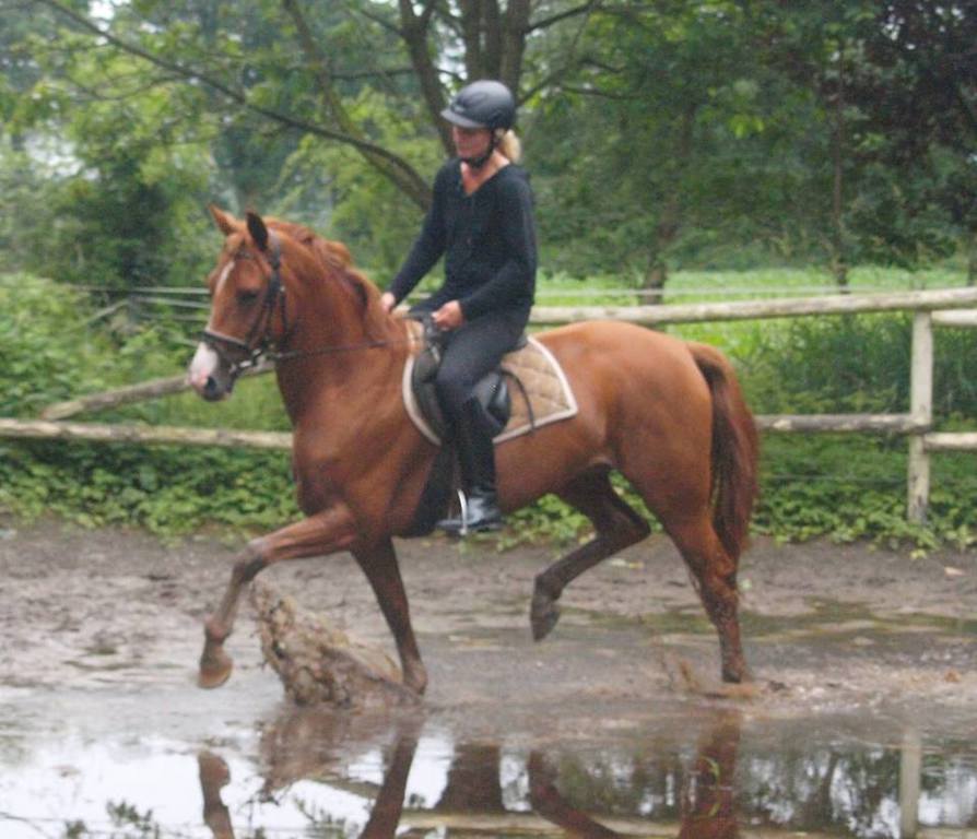 Fleur ist eine sehr sympathische und sehr aufgeweckte Stute, die eifrig jede ihr gestellte Aufgabe meistern möchte. Sie ist sehr leichtrittig und stellt sich beim Springen sehr geschickt und willig an. Im Gelände ist sie gelassen und brav. Sicherlich ein Pferd, welches sich vielseitig einsetzen lässt.
