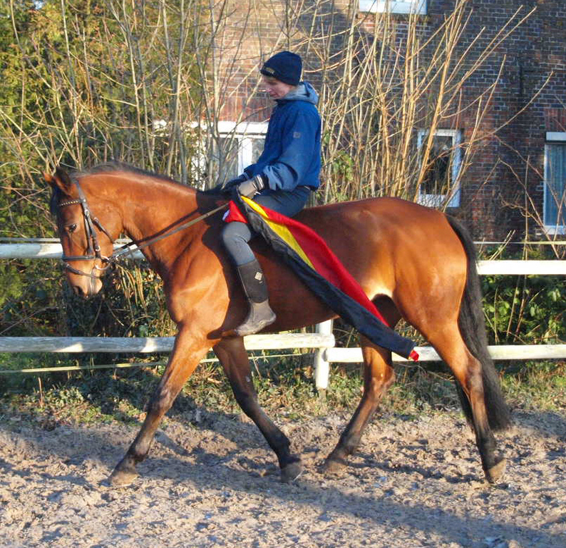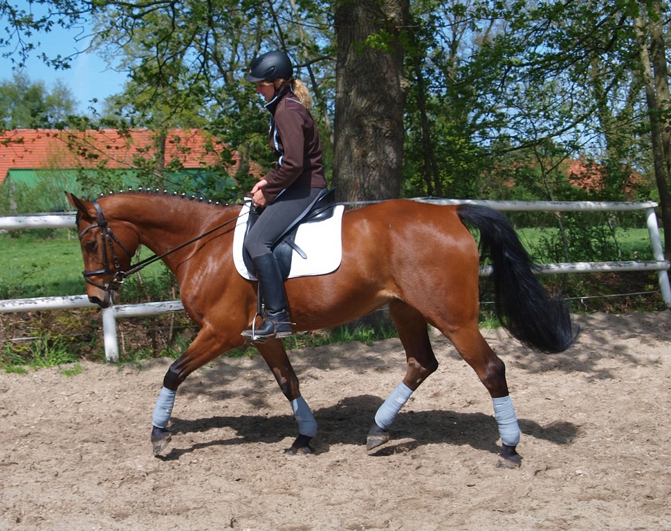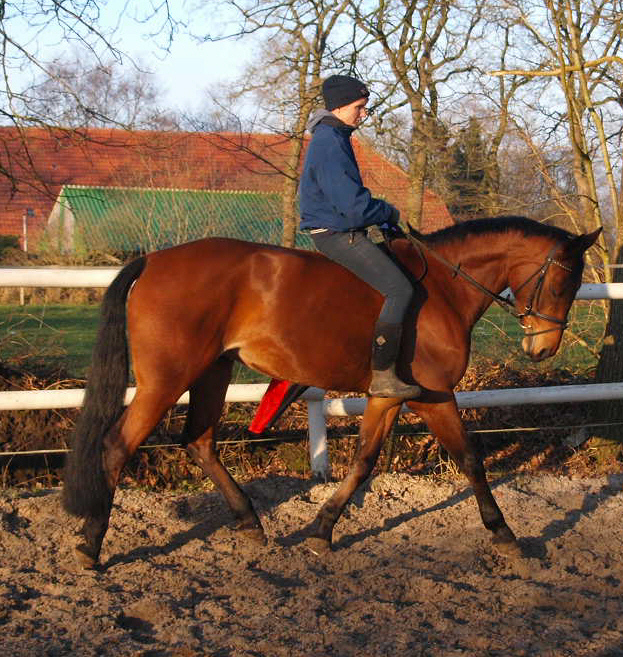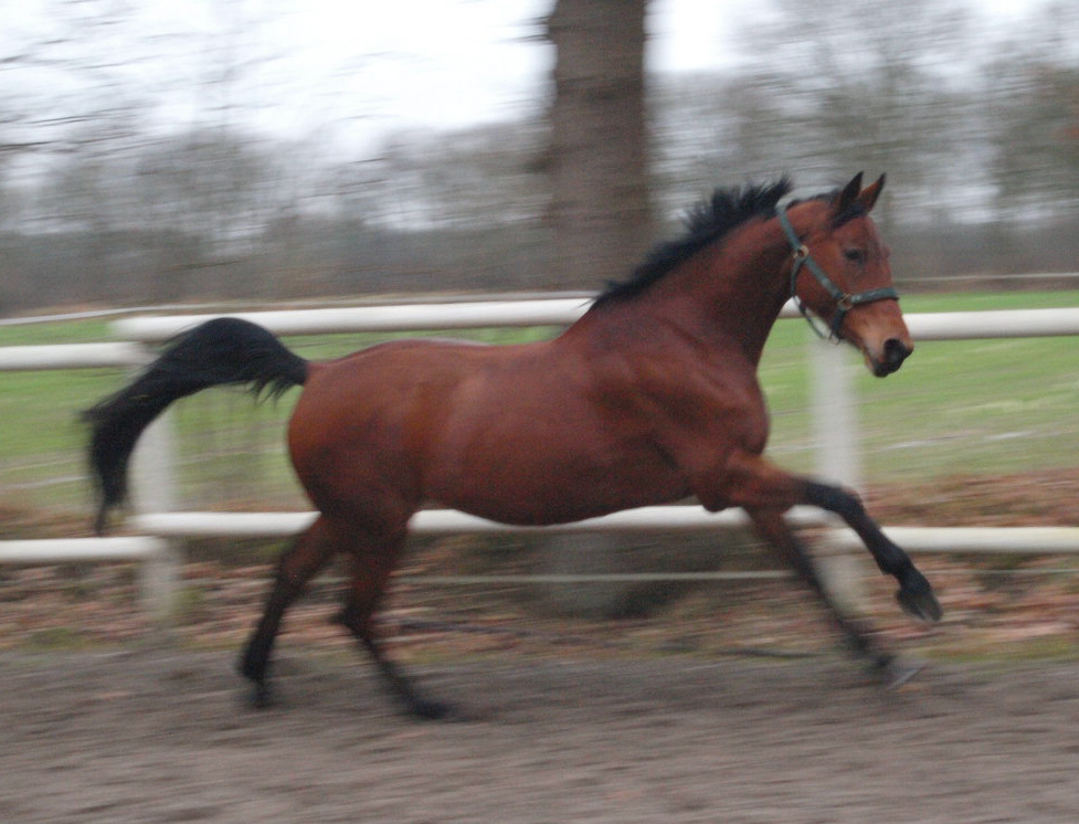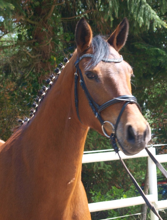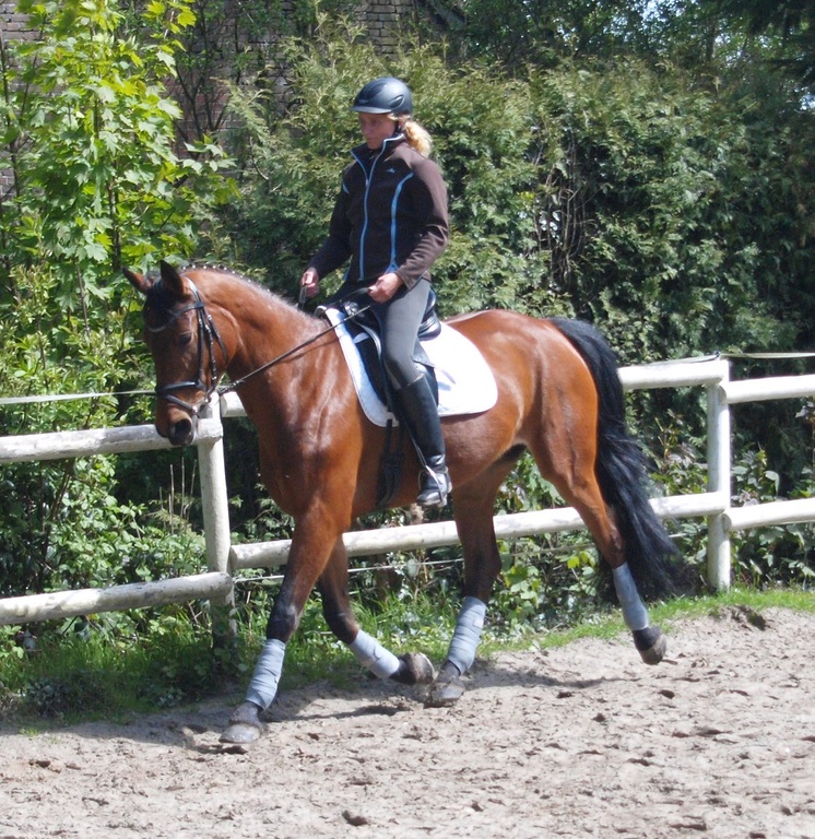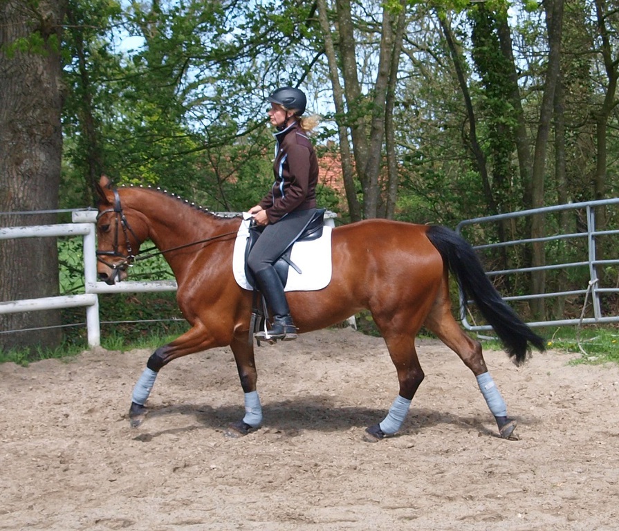 Blutgeprägte oldenburger Stute. Sie ist völlig unkompliziert im Umgang, sie macht Spaß bei der täglichen Dressurarbeit und sie macht einen sehr schönen Sprung. Da ich gerne Ausreite, wird sie nun viel im Gelände geritten, auch ohne Sattel und alleine habe ich keinerlei Probleme mit ihr. Sie ist eine super Freizeitpartnerin.